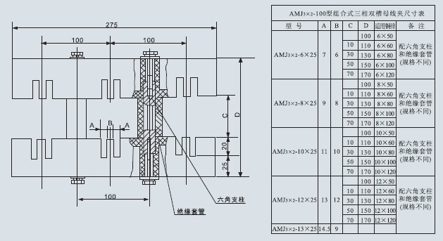 AMJ3×2-100型組合式三相雙槽母線夾