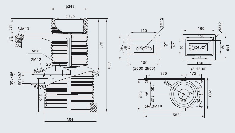 額定電壓:40.5kV; 工頻耐壓:95kV/1min;