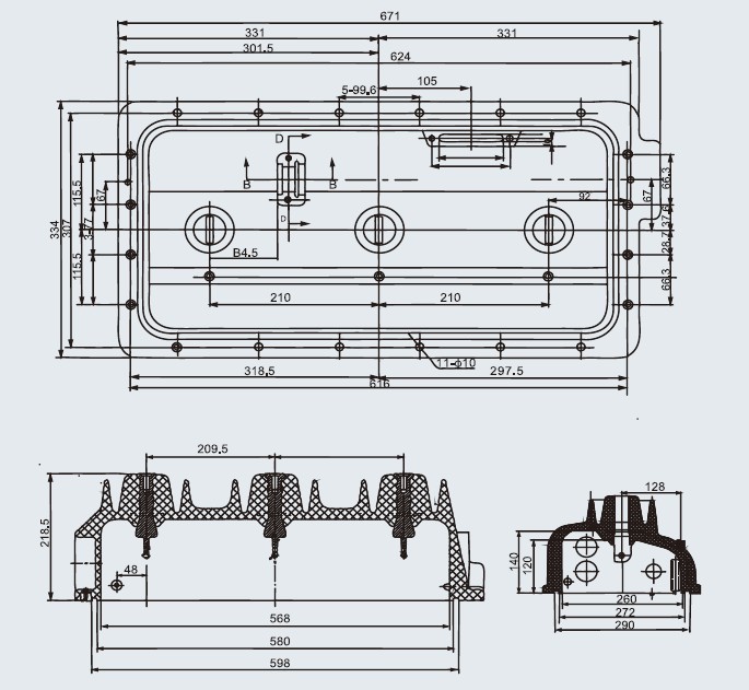 產(chǎn)品編號:HCA806 名稱:SF6下殼體 外形尺寸:671×334×218.5