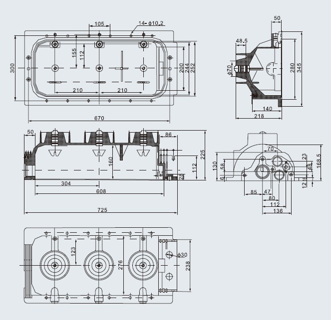產(chǎn)品編號:HCA808 名稱:SF6下殼體 外形尺寸:725×345×225